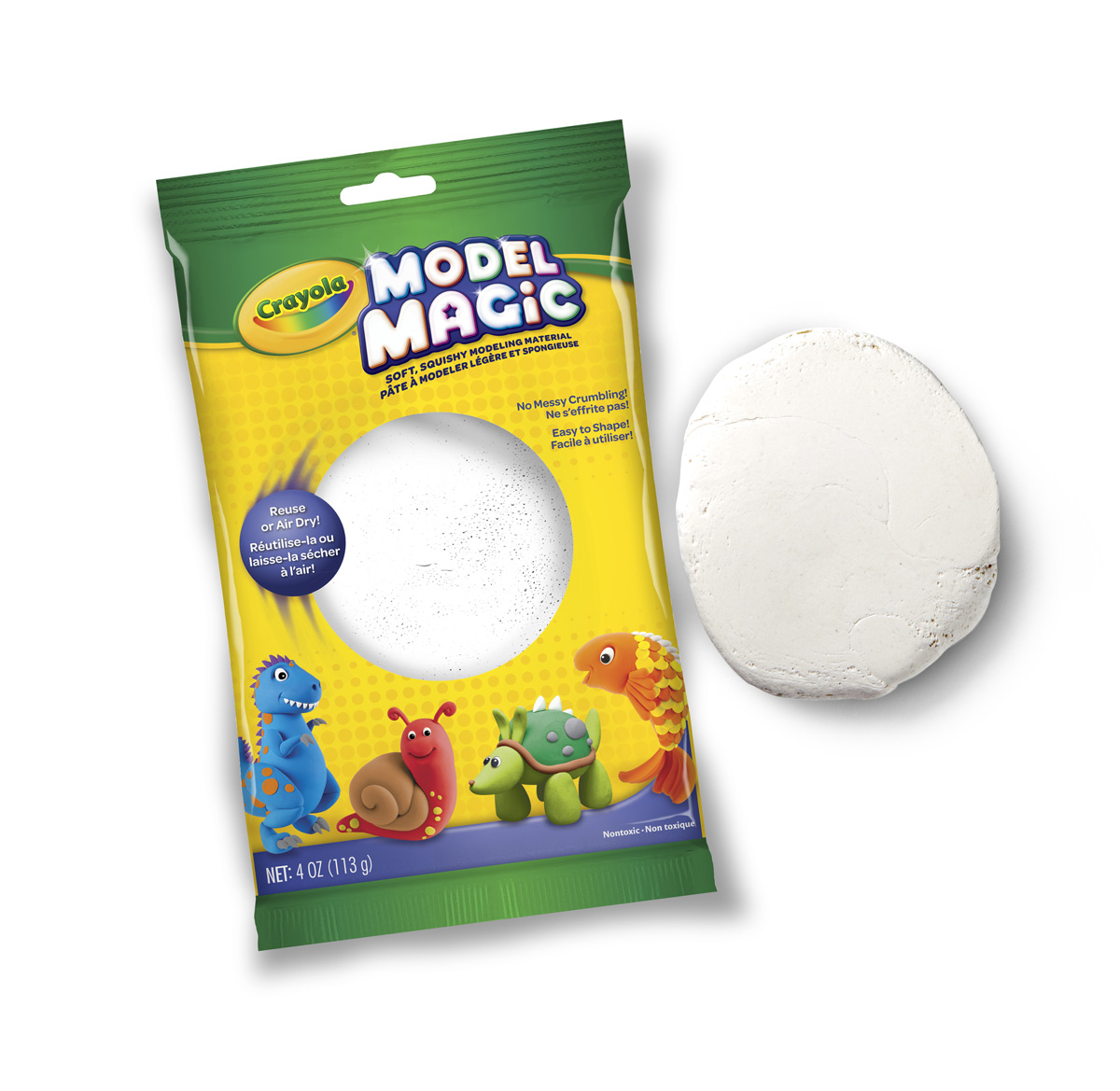 Волшебная масса для лепки белого цвета Crayola – прекрасное дополнение к любому шедевру вашего ребенка. Приятная на ощупь масса для лепки, которая во время использования не прилипает к рукам ребенка, позволит малышу включить всю свою фантазию. Помогите ребенку в развитии творческого мышления. Разноцветный пакетик, в который запакован кружок белой массы для лепки с приятным запахом, не сможет не порадовать маленького любителя творчества. Размер пакетика - 23х14х4 сантиметра. Масса для лепки твердеет на воздухе за ночь. Окончательно он застывает в течение 72 часов.