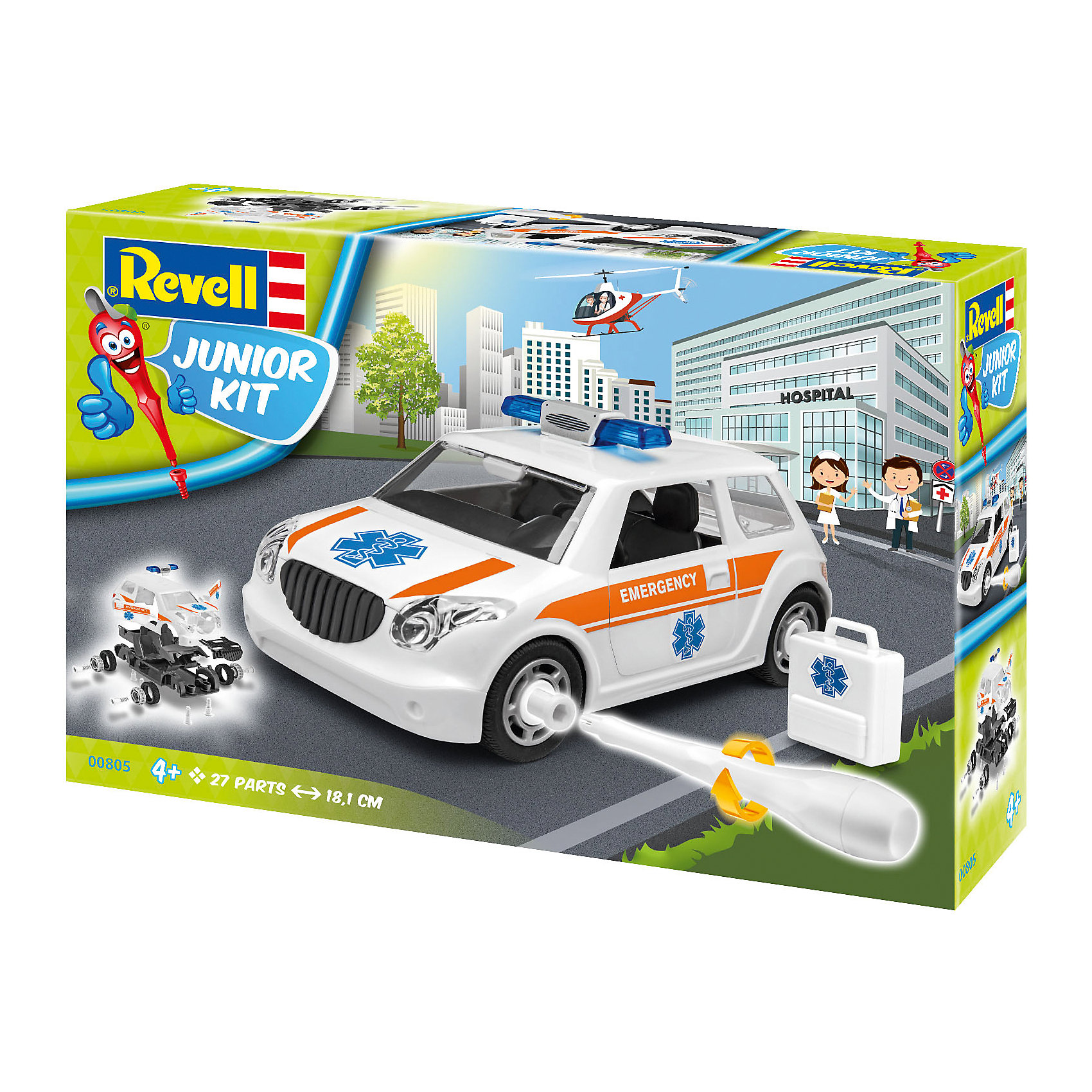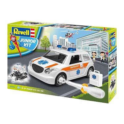 Абсолютно новую линейку сборных моделей представила компания Ревелл в этом году. Создана она специально для самых юных моделистов, которые делают свои первые шаги в этом хобби. Все детали моделей линейки Junior kit выполнены из пластика и уже окрашены. Ребенку остается лишь собрать их. Клеить детали не нужно, они стыкуются при помощи специальных элементов. Они легко вкручиваются при помощи пластиковой отвертки, которая входит в набор. Колеса машинки вращаются. Двери и багажник открываются. Все детали выполнены из прочного пластика. Поэтому после сборки модели ребенок сможет использовать ее как обычную игрушку. Кроме того он всегда сможет разобрать машинку и попытаться собрать ее заново за меньшее время. Сборка модели поможет развить мелкую моторику рук, познакомит с техническим творчеством и обучит ребенка работе с простейшими инструментами. Модель рассчитана на детей в возрасте от 4 лет.