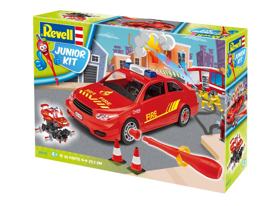 Абсолютно новую линейку сборных моделей представила компания Ревел в прошлом году. Создана она специально для самых юных моделистов, которые делают свои первые шаги в этом хобби. Все детали моделей линейки Junior kit выполнены из пластика и уже окрашены. Ребенку остается лишь собрать их. Клеить детали не нужно, они стыкуются при помощи специальных элементов. Они легко вкручиваются при помощи пластиковой отвертки, которая входит в набор. Колеса машинки вращаются. Двери и капот открываются. Все детали выполнены из прочного пластика. Поэтому после сборки модели ребенок сможет использовать ее как обычную игрушку. Кроме того он всегда сможет разобрать машинку и попытаться собрать ее заново за меньшее время. Сборка модели поможет развить мелкую моторику рук, познакомит с техническим творчеством и обучит ребенка работе с простейшими инструментами. Используя детали из этого набора, ребенок сможет собрать легковую пожарную машину внедорожник. В набор включены наклейки для корпуса машинки. Модель состоит из 26 деталей. Время сборки от 30 до 45 минут. Модель рассчитана на детей в возрасте от 4 лет.