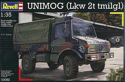 Сборная модель армейского автомобиля LKW 2t. tmil gl (Unimog). Копия немецкого грузовика выполнена в масштабе 1:35. Модель должна быть собрана из 194 элементов. Эти пластиковые детали необходимо склеить. Затем модель нужно покрасить. Клей и краски в этот набор не включены. Их нужно докупить отдельно. Длина модели 15,5 сантиметров. В комплект входит декаль (переводные картинки) с символикой и номерами для автомобиля на службе в немецкой или бельгийской армии. Модель для взрослых и детей от 12 лет.
