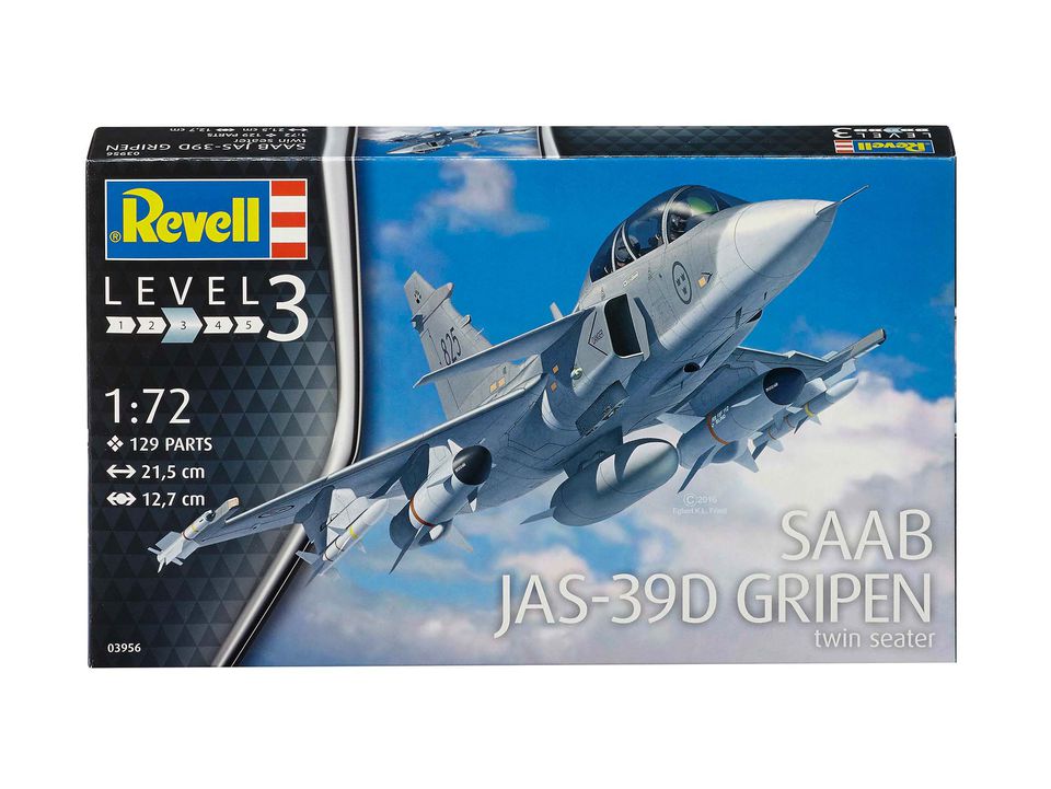 Сборная модель самолета Сааб JAS-39D Грипен в масштабе 1:72. Этот истребитель-бомбардировщик активно использовался в различных ролях в ВВС стран НАТО. Длина модели после полной сборки составляет 21,5 сантиметров. Размах крыльев 12,7 сантиметров. Набор состоит из 115 деталей. Декаль для самолета: Saab JAS-39D Gripen, 39825 – ВВС Швеции, 2015 год Клей и краски приобретаются отдельно. Сборная модель рекомендуется для детей от 10 лет.