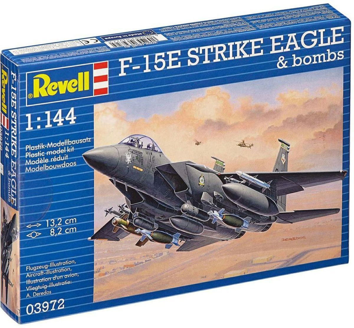 Сборная модель самолета F-15E. Уменьшенная копия этого военного самолета изготовлена из пластика в масштабе 1:144. Вам потребуется самостоятельно собрать и покрасить модель. Для этих целей вам пригодится специальный клей и акриловые или эмалевые краски Revell. Расходные материалы в данный набор не входят и приобретаются отдельно. Масштаб: 1:144 Количество деталей: 70 Размах крыла: 8,2 см Длина модели в собранном виде: 13,2 см Рекомендуется для детей от 10 лет.