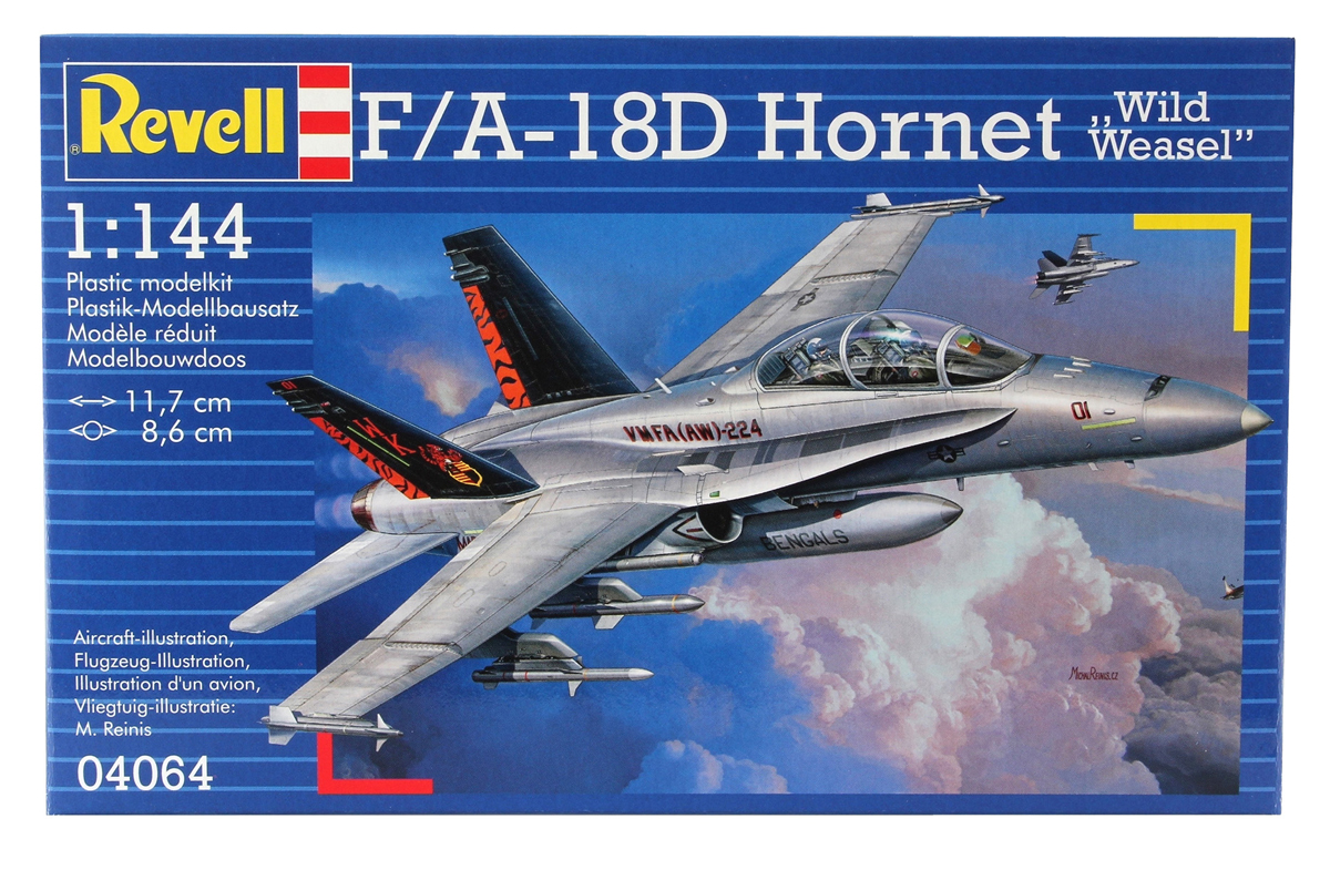 Масштаб: 1:144; Количество деталей: 52 шт.; Длина модели: 117 мм.; Размах крыльев: 86 мм; Подойдет для детей старше 10-и лет. Модель самолета F-A-18D Hornet "Wild Weasel" является уменьшенной копией одноименного истребителя, впервые выпущенного в США в 1987 году. ВНИМАНИЕ: Клей, краски и кисточки продаются отдельно.
