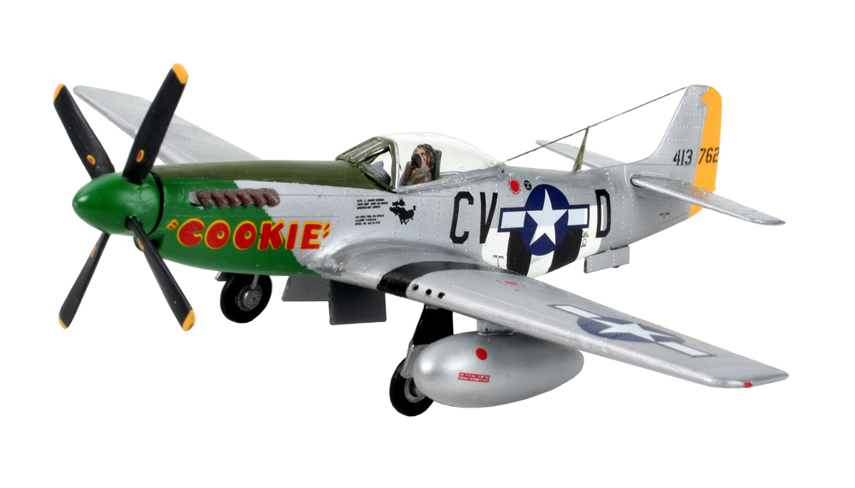 P-51D – американский одноместный истребитель времен Второй мировой. Использовался Королевскими ВВС как самолет-разведчик и истребитель прикрытия для дальних бомбардировщиков. Применялся во время войны в Корее Масштаб: 1:72 Количество деталей: 34 Длина модели: 137 мм Размах крыльев: 156 мм Клей и краски в комплект не входят