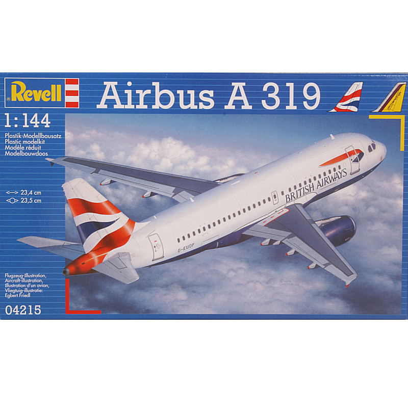 Airbus A320 — семейство узкофюзеляжных самолётов для авиалиний малой и средней протяжённости. Первый самолет был выпущен в 1988 году. Модификация A 319 отличается от своего предшественника более укороченным фюзеляжем. Инженеры Airbus добились этого за за счёт уменьшения количества пассажирских кресел на два ряда Масштаб: 1:144 Количество деталей: 65 Длина модели: 234 мм Размах крыльев: 235 мм Подойдет для детей старше 10-и лет Клей, краски и кисточки приобретаются отдельно
