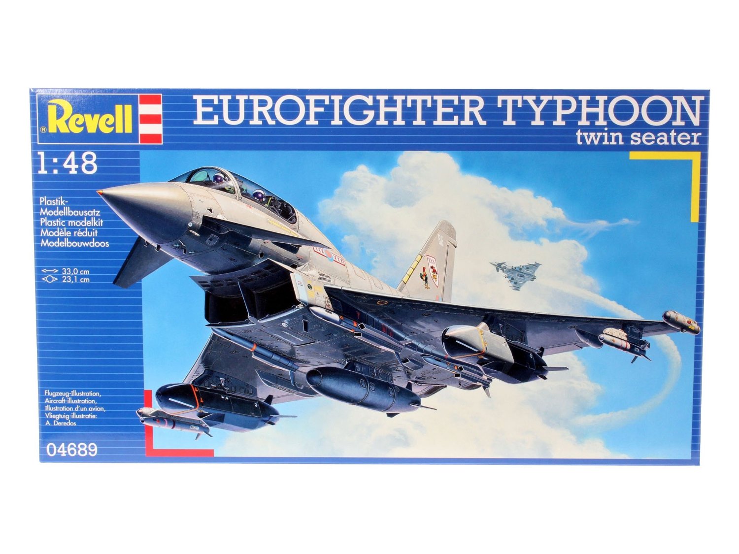 Модель многоцелевого самолета Eurofighter Typhoon. Опытный образец самолета четвертого поколения впервые поднялся в воздух в 1994 году. С 2003 года Eurofighter стал поступать в эскадрильи ВВС ряда европейских стран. Всего было построено 355 машин Самолет вооружен 27-мм пушкой Маузер BK-27. Кроме того, Eurofighter способен нести ракеты и бомбы общим весом в 6500 кг Масштаб: 1:72 Количество деталей: 170 Длина модели: 220 мм Размах крыльев: 154 мм Подойдет для детей старше 10-и лет Клей и краски в комплект не входят.