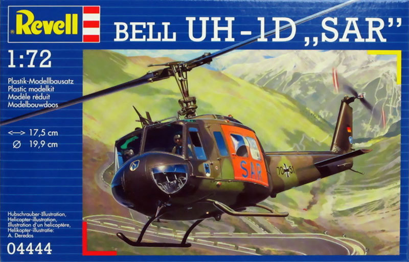 Bell UH-1D «SAR» является одним из самых безопасных вертолетов. Благодаря большим раздвижным дверям в нем можно перевозить крупногабаритные предметы. Вертолет вмещает в себя 2 пилотов и до 12 военнослужащих. Также этот вертолет известен не только собственной безопасностью, но и тем, что на нем был зарегистрирован 21 мировой рекорд Длина модели: 17,5 см Диаметр главного винта: 19,9 см Масштаб: 1:72 Количество элементов: 115 Для детей от 10 лет. Клей и краска в комплект не входят