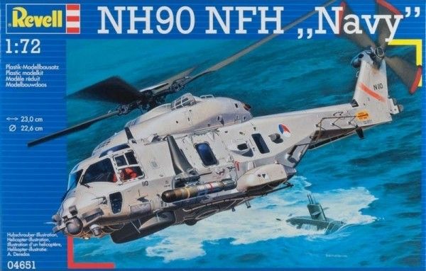 Сборная модель морской версии вертолета NH-90 NFH в масштабе 1:72. Модель выполнена из пластика. Эта версия вертолета NH-90 NFH разрабатывалась специально для использования на фрегатах. Причем машина была унифицирована для использования флотами всех стран участниц НАТО и ООН. Вертолет может использоваться для транспортировки солдат, а также для поиска вражеских подводных лодок. Длина модели: 230 мм Количество деталей: 181 Диаметр ротора: 226 мм Рекомендуется для детей от 10 лет.