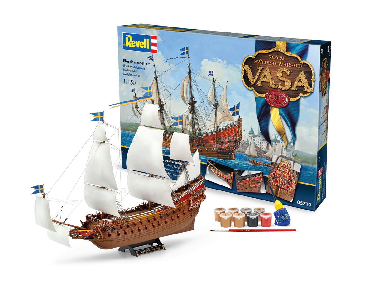 Блестяще выполненная немецкой компанией Revell сборная модель шведского военного корабля VASA представляет собой абсолютно точную уменьшенную копию своего прототипа в масштабе 1:150. Корпус знаменитого корабля имеет разные фактурные поверхности, на корме красуются уникальные украшения, а мачты, оригинальные пушки, две спасательные шлюпки, отдельные окна для пушек тщательно детализированы. Каждая деталь точно проработана и приближена к оригиналу. Всего модель состоит из 330 отдельных компонентов, которые необходимо собрать, склеить и покрыть краской в соотвестствии с инструкцией в комплекте. В наборе прилагаются 8 красок на водной основе, кисточка и клей в удобной упаковке. Длина готовой модели после сборки составляет 455 мм, а её высота – 345 мм. Сборка такой модели требует определённого уровня мастерства. Моделирование макета шведского корабля VASA относят к моделированию на супер сложном уровне (№5).