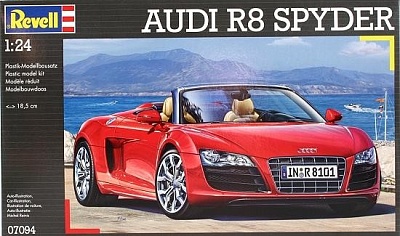 Масштаб: 1:24; Количество деталей: 126 шт.; Длина модели: 185 мм.; Подойдет для детей старше 10-и лет. Модель автомобиля Audi R8 Spyder является уменьшенной копией одноименного спортивного автомобиля, впервые выпущенного в Германии в 2009 году. ВНИМАНИЕ: Клей, краски и кисточки продаются отдельно.