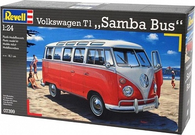 Масштаб: 1:24; Количество деталей: 173 шт.; Длина модели: 181 мм.; Подойдет для детей старше 10-и лет. Модель автобуса VW T1 Samba Bus от фирмы Revell является уменьшенной копией одноименного немецкого автобуса. Впервые произведен в 1962 году в Германии. ВНИМАНИЕ: Клей, краски и кисточки приобретаются отдельно.