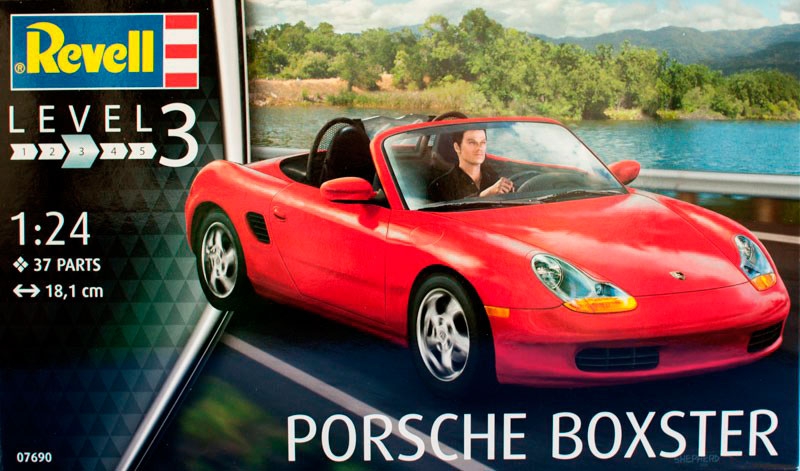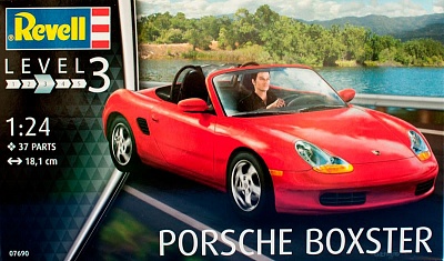 Сборная модель автомобиля Porsche Boxster в масштабе 1:24. Модель собирается из 37 пластиковых и металлических деталей. Детали уже окрашены в базовые цвета. Оси машины представляют собой металлические стержни. Они вкручиваются в диски. Такое свойство позволяет сделать из модели настоящую игрушку. При желании машинку можно собрать полностью без клея. Однако для лучшей прочности все-таки рекомендуется использовать клей для пластика. Клей и дополнительная краска приобретается отдельно. Сборная модель для детей старше 10 лет.