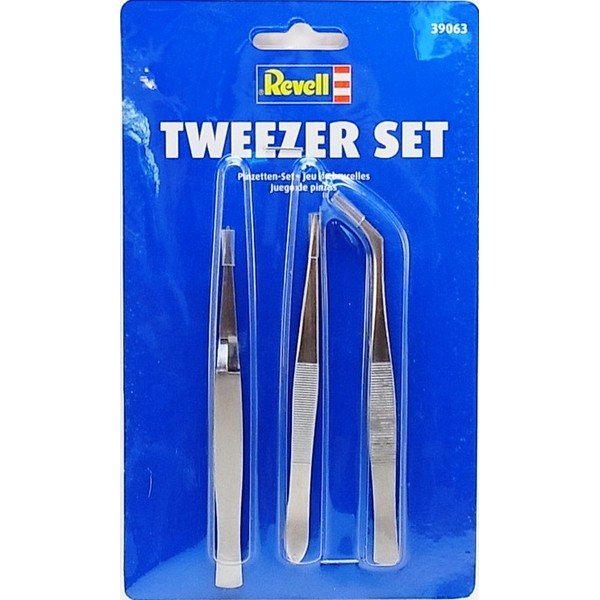 Работая даже с самыми миниатюрными деталями, вы всегда сможете подходить к ней «ювелирно». С набором пинцетов от Revell даже самая деликатная работа будет выполнена на отлично. В комплект входит три пинцета разного вида. Прямой пинцет длинной 117 мм, пинцет с загнутыми наконечниками — 118 мм, и с широкими плоскими — 109 мм. С их помощью вы сможете без проблем присоединить, приклеить, приложить любую деталь. Не рекомендуется давать детям младше 14 лет.