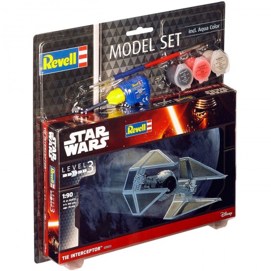 Сборная модель космического корабля TIE Interceptor из вселенной Звездные войны. Этот имперский перехватчик является модернизацией TIE Fighter’a. Детали модели выполнены из пластика. Всего их 21. В комплект включена одна фигурка пилота. Длина модели после сборки 10 сантиметров. Размах крыльев 7,8 сантиметров. Масштаб 1 к 90 Модель рассчитана на начинающих моделистов. Поэтому в набор уже включены кисточка, клей и акриловая краска. Всего в наборе 3 базовых цвета. Остальные краски необходимо приобрести отдельно. Рекомендуется для детей от 10 лет.