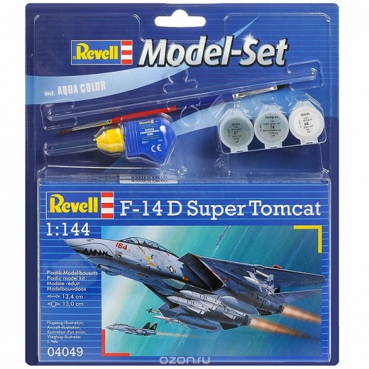 Масштаб: 1:144; Количество деталей: 57 шт.; Длина модели: 134 мм.; Размах крыльев: 130 мм; Подойдет для детей старше 10-и лет. Модель самолёта F-14D Super Tomcat от фирмы Revell является уменьшенной копией одноименного американского истребителя. Впервые произведен в 1990 году в США. В набор входят клей, краски и кисточка для полноценной сборки.