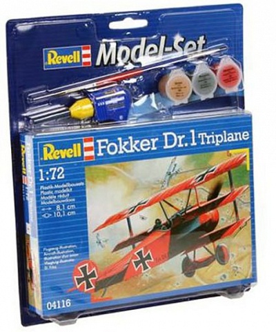 Набор немецкого триплана Fokker DR.1. Применялся ВВС Германии во время Первой мировой войны. Из-за множества проблем при эксплуатации использовался крайне редко. Помимо деталей для сбора модели в комплект входят кисточка, клей и базовые краски Масштаб: 1:72 Длина модели: 81 мм Размах крыльев:101 мм Количество деталей: 37 Уровень сложности сборки: 3