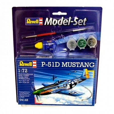 Набор, включающий модель самолета P-51D, клей, краску и кисточку P-51D – американский одноместный истребитель времен Второй мировой. Использовался Королевскими ВВС как самолет-разведчик и истребитель прикрытия для дальних бомбардировщиков. Применялся во время войны в Корее. Масштаб: 1:72; Количество деталей: 34 Длина: 137 мм Размах крыльев: 151 мм.