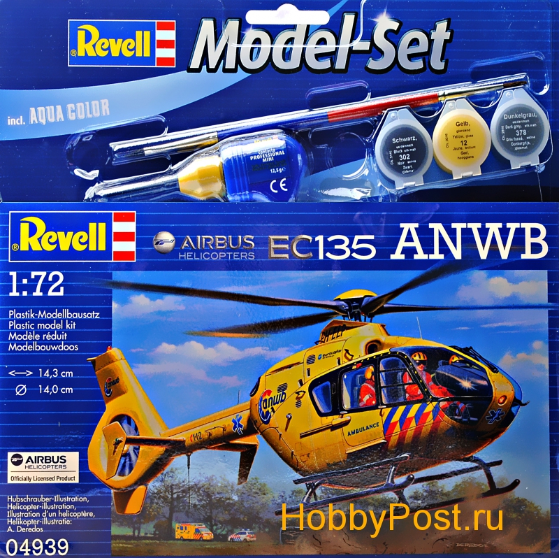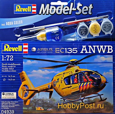 Сборная модель вертолета EC135 в медицинской модификации ANWB. Детали набора выполнены в масштабе 1:72 из пластика. В набор включены 3 банки акриловой краски базовых цветов, клей для пластика и кисточки. Также в комплект с моделью входят декали для сборки версии вертолета в расцветке спасательной службы Нидерландов. Масштаб: 1:72 Количество деталей: 65 Диаметр ротора: 14 см Длина модели в собранном виде: 14,3 см Рекомендуется для взрослых и детей в возрасте от 12 лет.