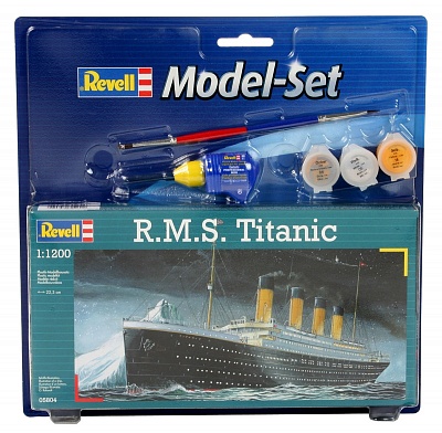 Набор «Корабль R.M.S Titanic» от компании Revell может быть рекомендован для детей старше 10 лет. В него входит модель знаменитого корабля, состоящая из отдельных деталей, которые должны быть склеены в нужной последовательности, после чего готовая модель корабля окрашивается специальной краской. Необходимые для проведения процесса сборки краски, кисточка и клей, а также подробная инструкция входят в комплект набора «Корабль R.M.S Titanic». Масштаб: 1:1200; Количество деталей: 40; Размер: 223 мм.