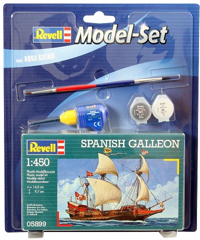 Набор с моделью испанского галеона. Галеон является одним из самых ярких представителей кораблей времен золотого века парусного флота. Впервые суда данного типа появились в середине шестнадцатого века. На протяжении века галеоны были основными судами испанского флота. Именно из этих кораблей состояла “Непобедимая армада” – испанский флот, насчитывающий 130 судов. Классический испанский галеон представлял собой двухпалубное парусное судно с высокой кормой. Длина модели: 190 мм Ширина модели: 97 мм Масштаб: 1:450 Количество элементов: 19 Для детей от 10 лет Клей и базовые краски в комплекте