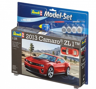 Набор со сборной моделью американского автомобиля Camaro ZL-1 версии 2013 года. Модель выполнена из пластика в масштабе 1 к 25. Для сборки и последующей покраски вам понадобятся клей и краски. Уже включены в набор базовые акриловые краски, клей для пластика и кисточка. Дополнительные расходные материалы приобретаются отдельно В комплект включены декали (переводные наклейки), которые помогут нанести на модель номерные знаки. В том числе и версию российских номерных знаков. Масштаб 1:25 Модель состоит из 48 деталей. Длина модели в собранном виде 19,4 см. Рекомендуется для взрослых и детей от 10 лет.