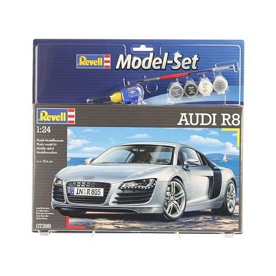 Масштаб: 1:24; Количество деталей: 106 шт.; Длина модели: 184 мм.; Подойдет для детей старше 10-и лет. Модель автомобиля Audi R8 года от фирмы Revell является уменьшенной копией одного из лучших суперкаров - Audi R8. В набор входят краски, клей и кисточка.