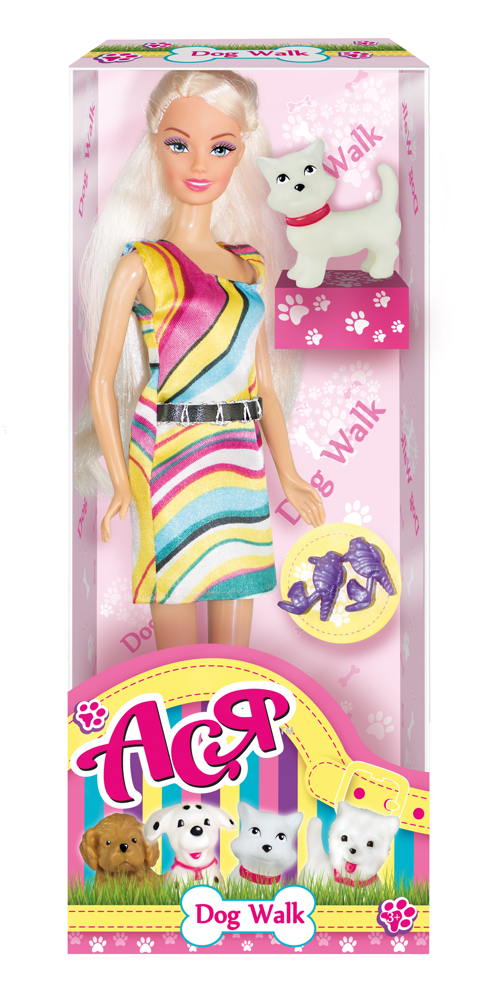 Кукла Ася "Прогулка с щенком", не просто настоящая модница, она еще и обожает животных, поэтому с удовольствием берет на прогулку своего любимого питомца-белоснежного песика в ярком розовом ошейнике. Высота куклы: 28 см. Материал: качественный пластик, текстиль Размер упаковки: 13х5х32,5 см. Рекомендуемый возраст: от 3 до 7 лет.