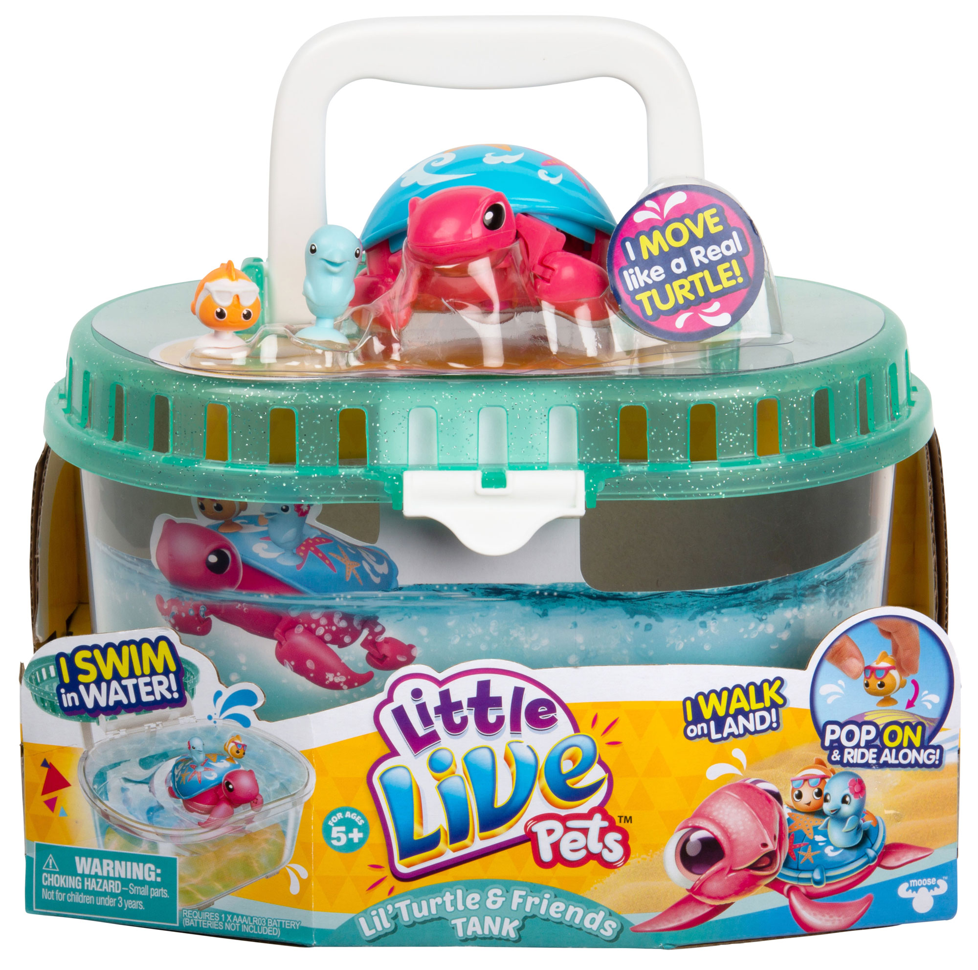 Новая интерактивная черепашка Little Live Pets умеет ползать по суше и плавать в воде, совсем как настоящая! Черепашка также умеет нырять в свой аквариум со своими друзьями - двумя подводными обитателями, которые легко крепятся к ее панцирю при помощи специальных присосок.