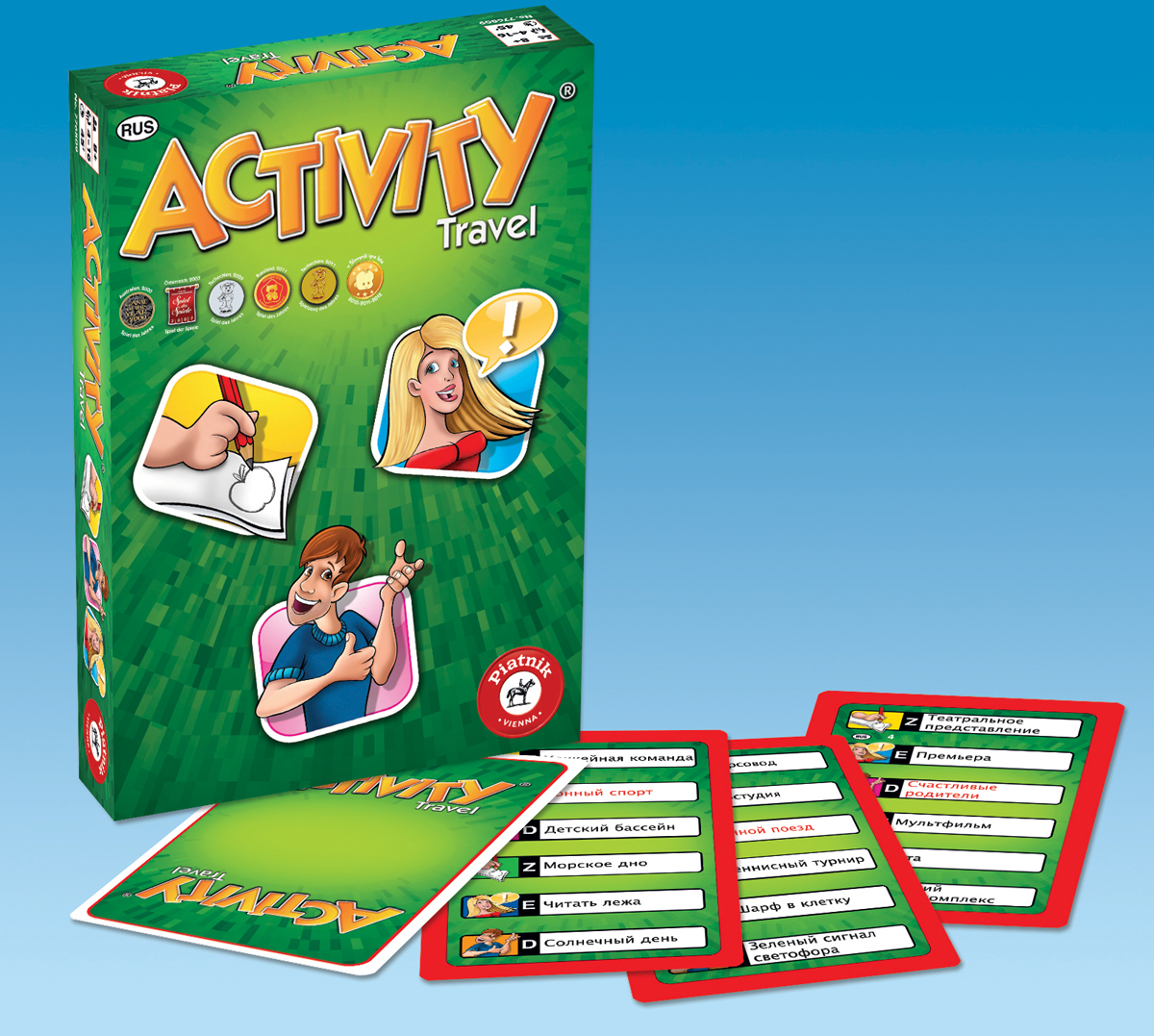 Это развивающая общение игра для 3-99 человек игроков от 8 лет. Она основана на обмене идеями между игроками. В игре используются все обычные формы общения для разъяснения слов и выражений: Z - Рисование, E - Объяснение и D -Пантомима. Activity Travel - это оптимальная версия, чтобы брать с собой игру всюду, а также не расставаться с любимой игрой в поездке и во время отпуска.