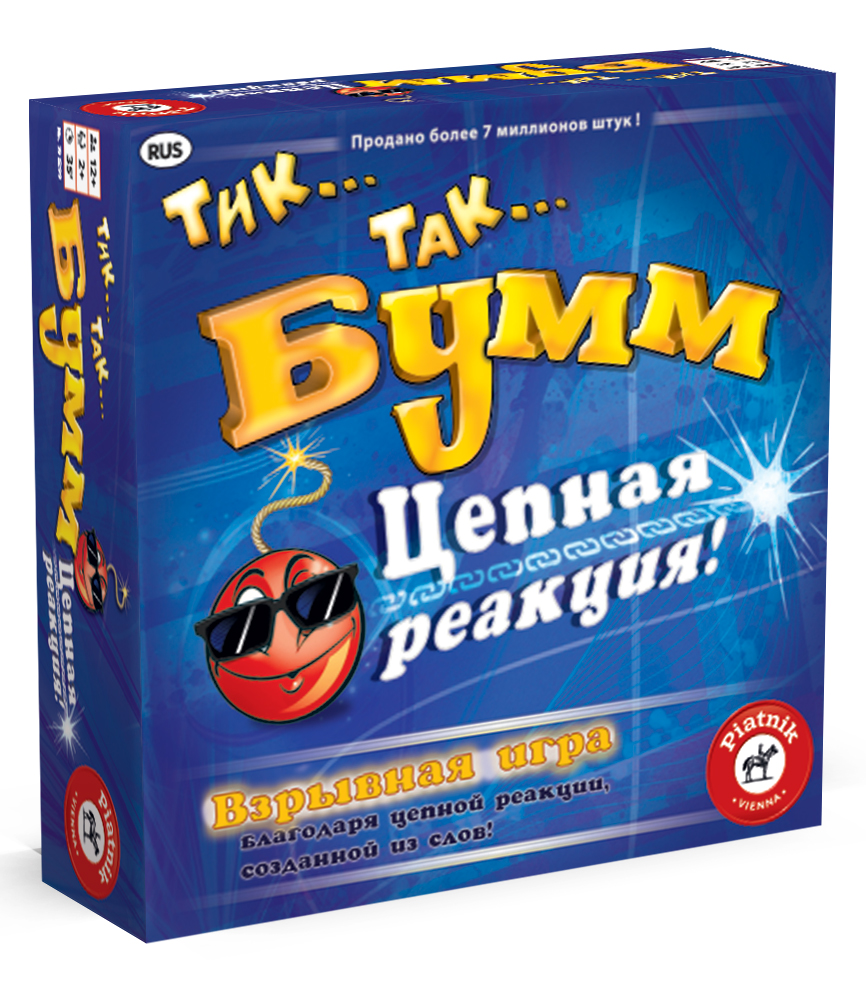 Взрывная игра благодаря цепной рекции, созданной из слов! Необходимо быстро подобрать слово, не прерывая цепочку слов. Но это легче сказать, чем сделать! Потому новое слово должно начинаться на последнюю букву предыдущего слова. Тикающая бомбочка задает ритм, придает особый азарт и щекочет нервы! Игра проходит по часовой стрелке до того момента, пока фишка не будет положена на желтую карточку с темой- в этом случае меняется направление игры. А это значит, что увеличивается возможность совершения ошибки. Кто из игроков сохранит ясную и светлую голову? Без собранности и находчивости не обойтись! Ну что, готовы?