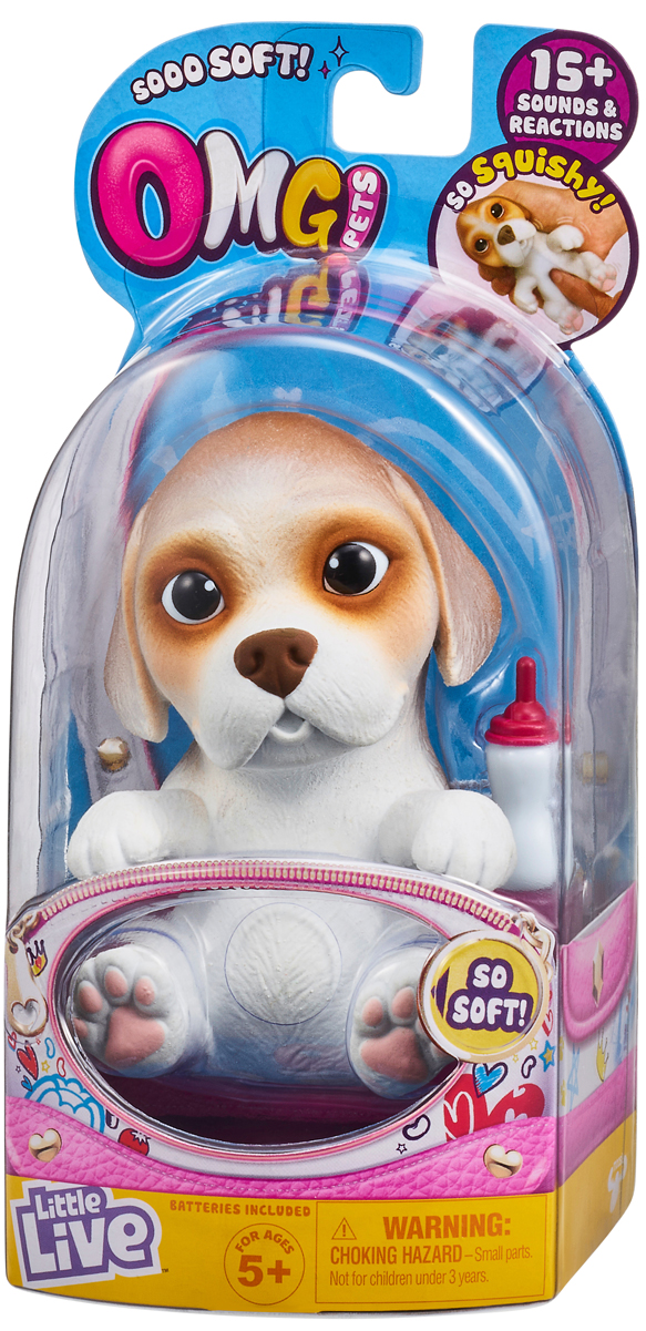 Новинка! OMG Pets! – новые питомцы Little Live – сквиши-щенки! Очень милые и мягкие – совсем как настоящие! Чудо-питомцы умеют проявлять эмоции: будут радостно тявкать, если их погладить по голове или покормить из бутылочки, и будут огорчаться, если их надолго оставить без внимания. Волшебная бутылочка в комплекте подскажет пол щенка! Линейка представлена 6 породами щенков: пудель, немецкая овчарка, французский бульдог, бигль, хаски и лабрадор. В КОМПЛЕКТЕ: 1 Чудо-питомец, 1 Бутылочка, 3 Батарейки типа LR44, 1 Свидетельство о рождении, 1 Инструкция.