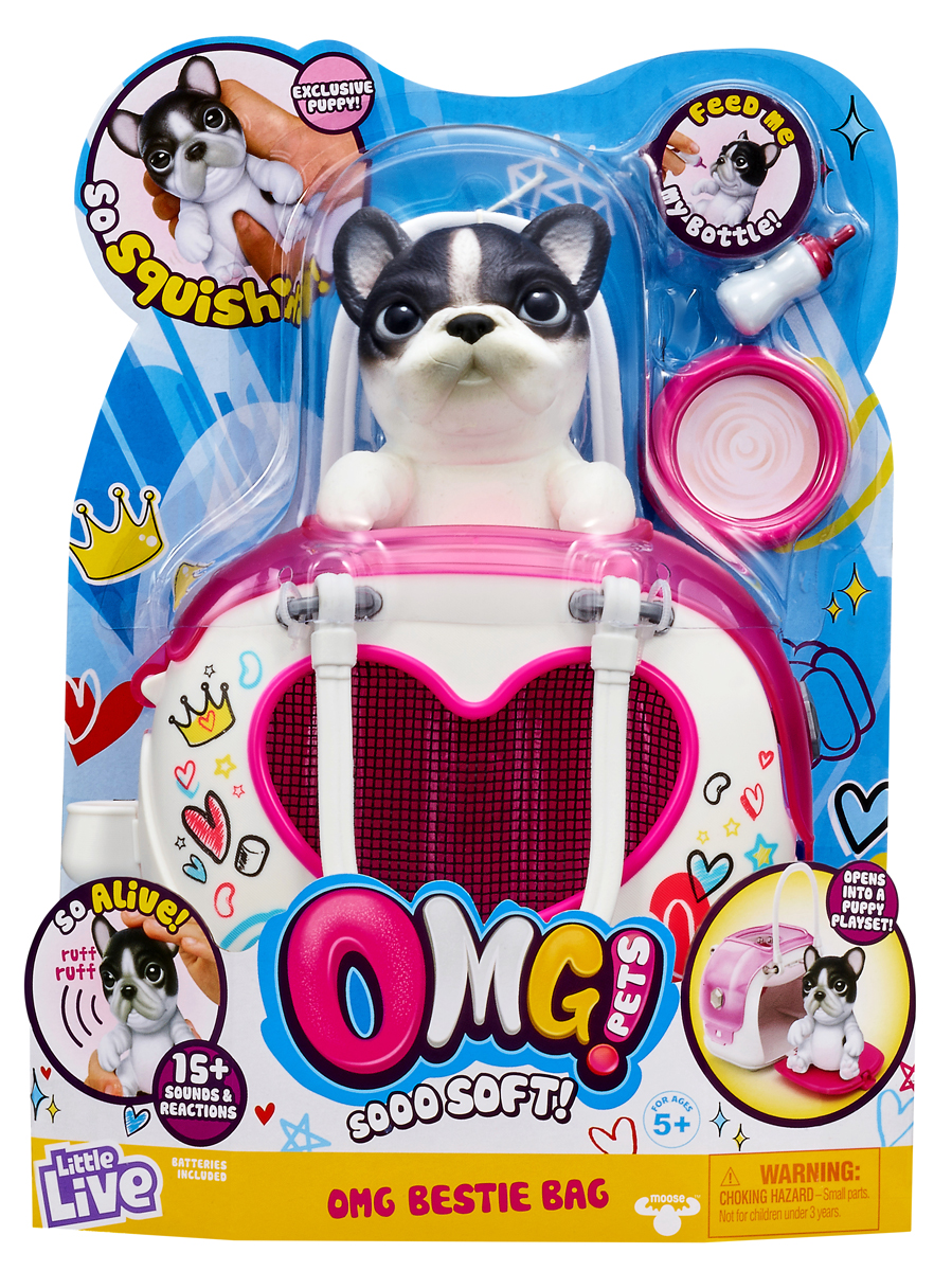Новинка! Cквиши-щенок OMG Pets! в переноске, такой милый и мягкий – совсем как настоящий! Чтобы он не скучал, бери его с собой – для этого есть яркая и удобная переноска. Твой чудо-питомец будет радостно тявкать, если его погладить по голове или покормить из бутылочки, и будет грустить, если ты его оставишь без внимания надолго. Волшебная бутылочка в комплекте подскажет пол щенка! А чтобы твоему питомцу было уютно в дороге – есть подвесная лежанка и миска! В КОМПЛЕКТЕ: 1 Чудо-питомец, 1 Бутылочка, 3 Батарейки типа LR44, 1 Свидетельство о рождении, 1 Инструкция, 1 Переноска, 1 Подвесная лежанка, 1 Миска.