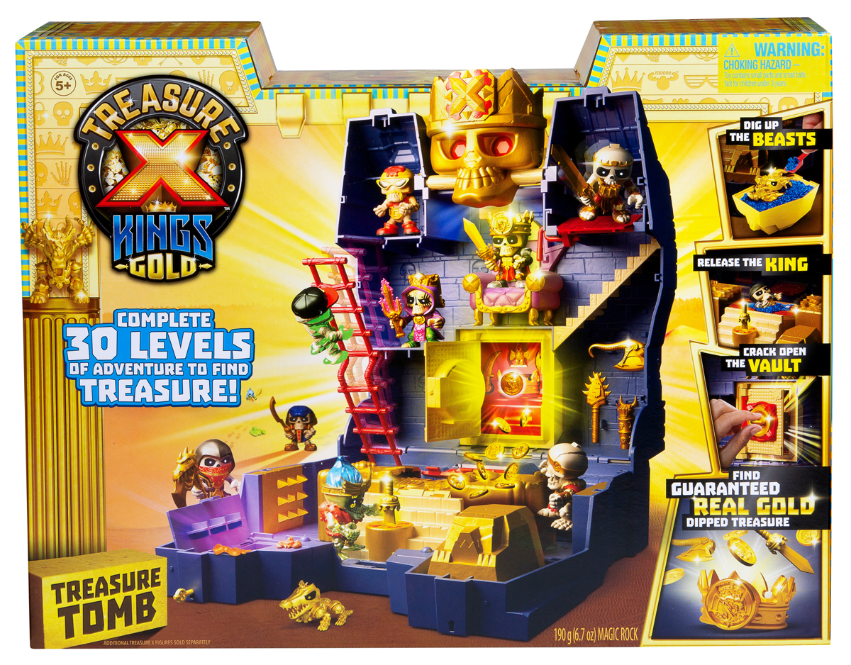 Новинка Treasure X – "Таинственная гробница". Погрузись в мир древностей и приключений! 30 шагов на пути к сокровищам! Преодолевай опасности и ловушки, находи таинственных животных. Разбуди дремлющего в саркофаге Короля и помоги ему обрести магический щит, чтобы открыть сейф с богатством – драгоценными монетами. В наборе тебя ждет новый элемент – "волшебный песок", который не рассыпается! В КОМПЛЕКТЕ: 1 Гробница, 1 Сейф, 1 Королевская корона (из пластика с позолоченной вставкой), 10 Монет, 3 Простых сокровища, 1 Саркофаг со спрятанным Королем, 1 Фигурка Короля, 2 Саркофага со спрятанными Таинственными животными, 2 Таинственных животных, 2 Ключа, 1 Щит, 1 Вставка в щит, 1 Меч, 4 Неведомых существа, 1 Х-образная лопата, 1 Карта/Руководство коллекционера/Инструкция.