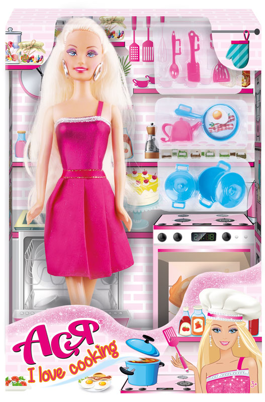 На этот раз у красотки Аси есть возможность удивить всех своими кулинарными таллантами. В наборе: кукла, пластиковая посуда(7 элементов), картонная плита.