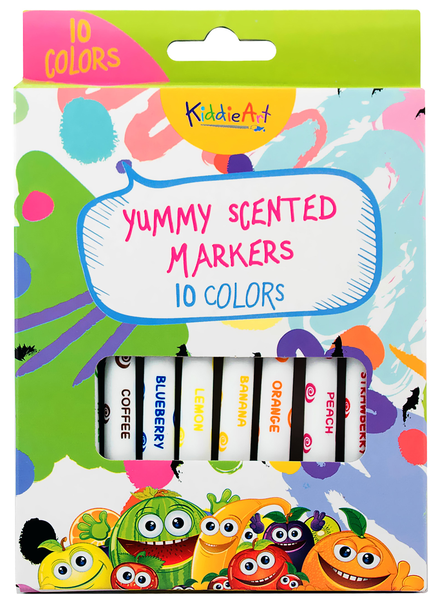 Набор цветных ароматизированных фломастеров KiddieArt придется по душе каждому юному любителю рисования. Все фломастеры из набора имеют свой уникальный аромат, который подписан на самом маркере. Фломастеры упакованы в удобную картонную коробку, которую можно хранить в ящике или вешать на крючок. Набор рекомендуется для детей в возрасте от 3 до 8 лет.