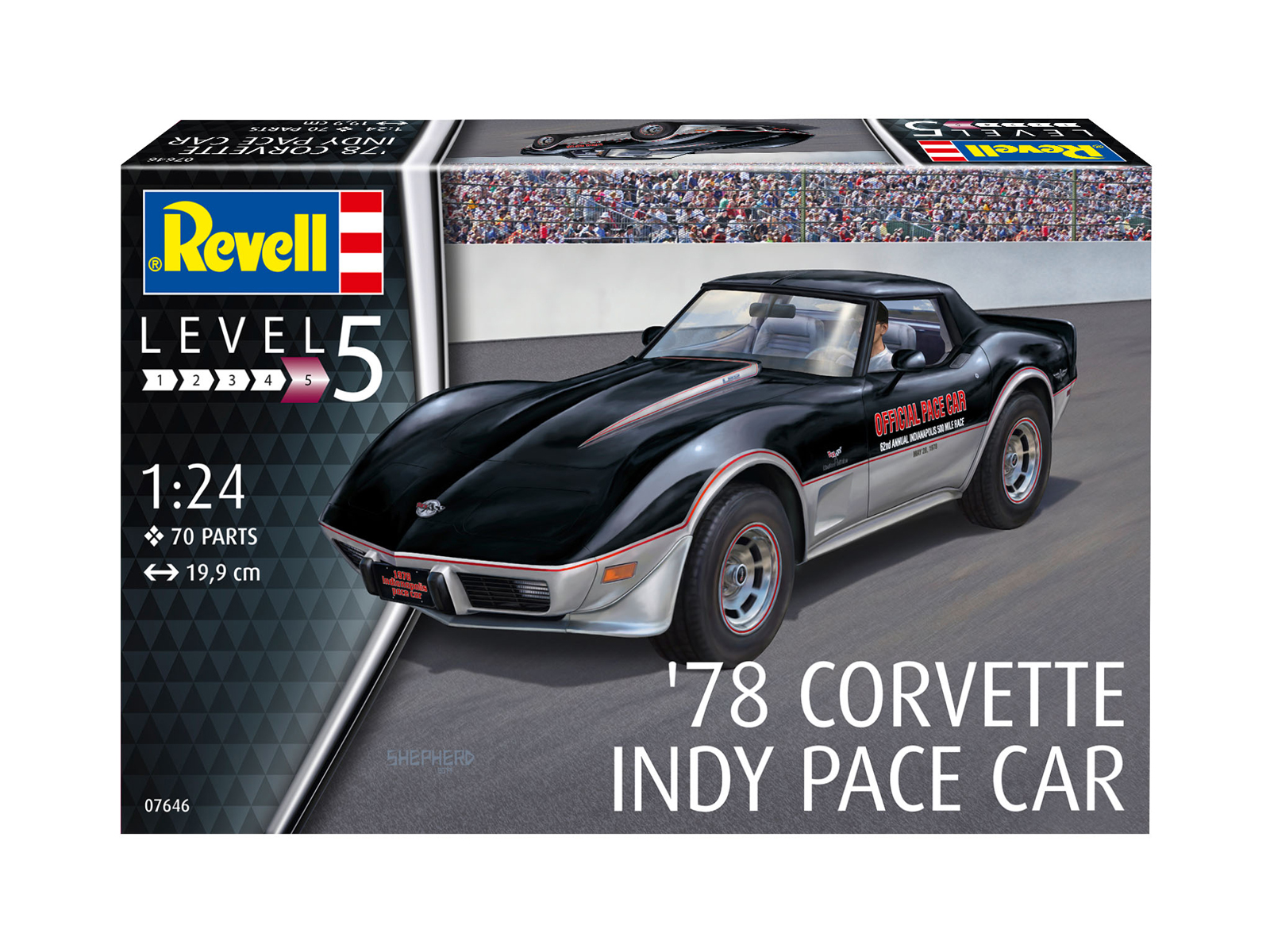 В 1978 году Corvette впервые возглавил легендарную гонку Индианаполис в 500 миль. Так GM чествовал 25-летие линейки Corvette. Масштаб 1:24. 70 деталей. Длина 19,9 см. возраст от 13 лет.