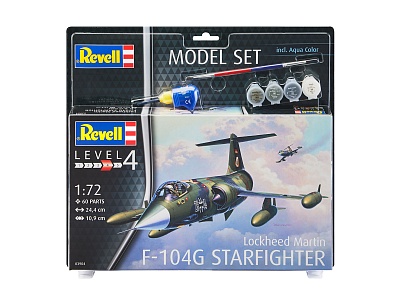 Lockheed F-104G "Starfighter" - истребитель-бомбардировщик с одним двигателем. У немецких ВВС было 72 самолета версии "G". Масштаб 1/72. 60 деталей. Длина 9,3 см. Возраст: от 12 лет.