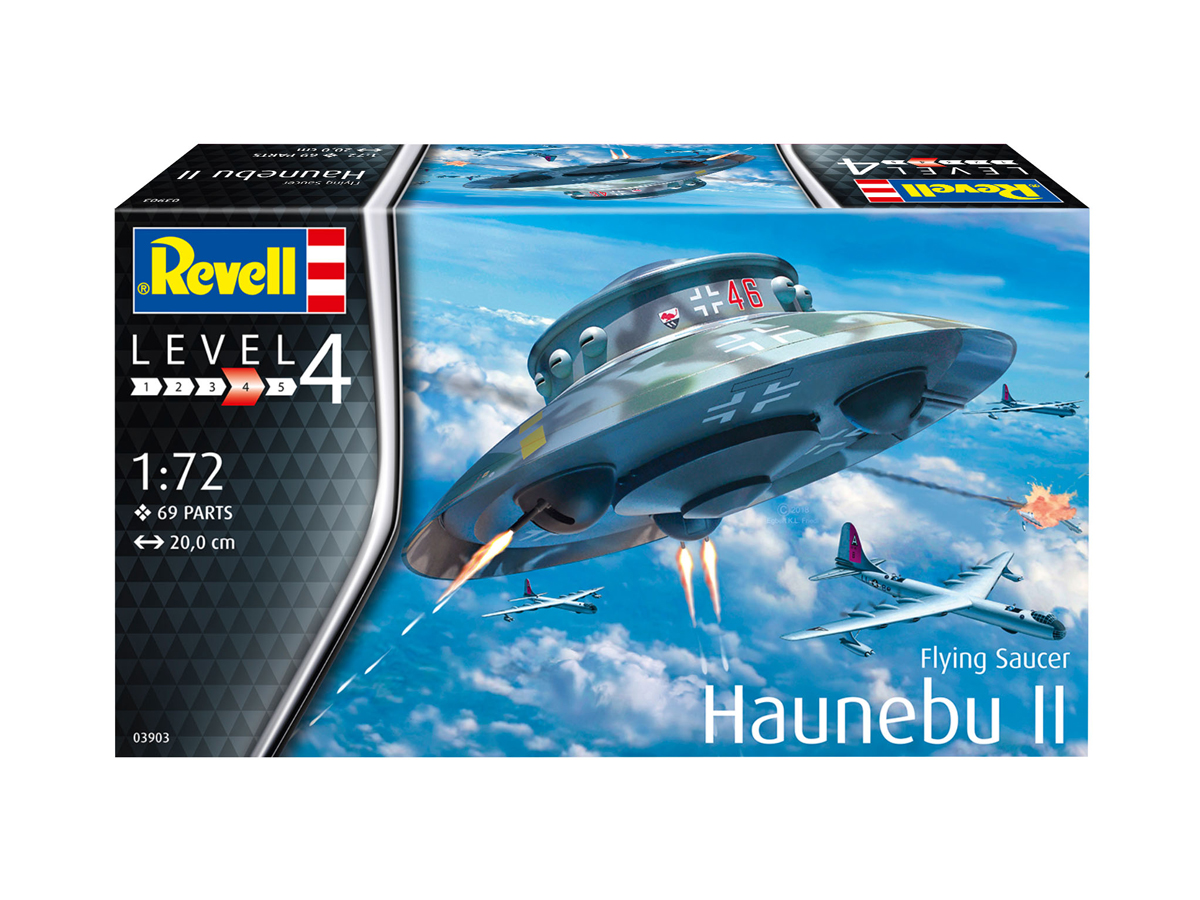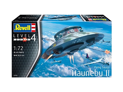 Haunebu II выглядит как самолет из научно-фантастического кино. Существование и реализация этой поразительной модели не могут быть реально доказаны. Масштаб 1/72. 69 деталей. Длина 20 см. Возраст: от 12 лет.