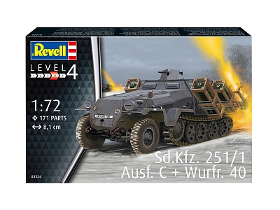 Типовой конструкторский комплект БТР Sd.Kfz. Модель C 251/1 со стартовой рамой. Масштаб 1/72. 171 деталь. Длина 8,1 см. возраст: от 12 лет.