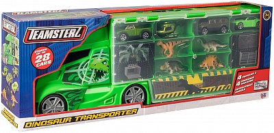 Грузовик для хранения и перевозки машинок Teamsterz. В комплекте 4 машинки и 4 фигурки динозавров. Общая вместимость грузовика 28 машинок.