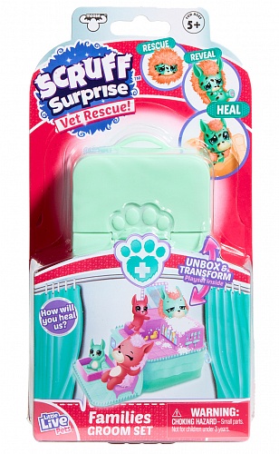 Новинка 2020 - "Семейство зверушек Scruff Surprise" - целое семейство миниатюрных пушистиков, которые ждут срочной ветеринарной помощи: нужно избавить от блох, вытереть слезки, вылечить насморк и согреть его разбитое сердечко (потереть пальцем, и оно проявится сплошным цветом). В серии 3 варианта: "Семейство зверушек Scruff Surprise "Лечимся дома" (кошачье семейство), "Семейство зверушек Scruff Surprise "Груминг-салон" (семья белых медведей), "Семейство зверушек Scruff Surprise "Ветклиника" (семья собак). В комплекте 2 родителя-зверька и 1 малыш. В каждой 4-й упаковке можно найти малышей-близнецов.