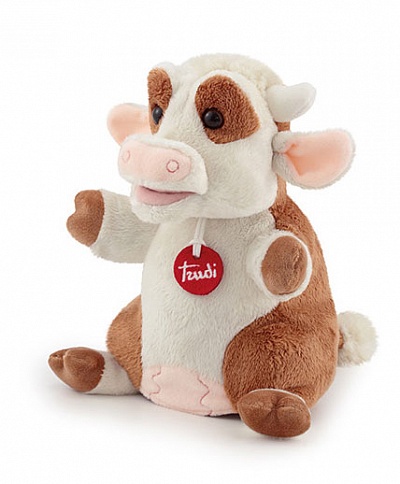 Мягкая игрушка на руку в виде бело-коричневой коровки привлекает внимание и вовлекает в любые детские игры. Надев на руку, можно разыграть сценки из любимых мультфильмов или придумать свой сценарий. Такая игрушка помогает развить у малыша творческие способности, укрепляет мелкую моторику, а также развивает речь и воображение.