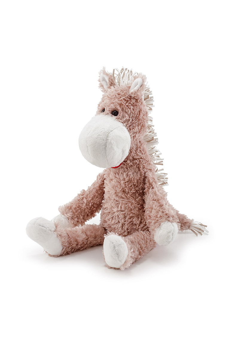 Кудрявая бежевая лошадка дожидается своего маленького хозяина с прогулки. У животного мягкие лапки и кудрявое тельце, милый вид и добрые глаза-пуговки. Высота игрушки – 32 см.