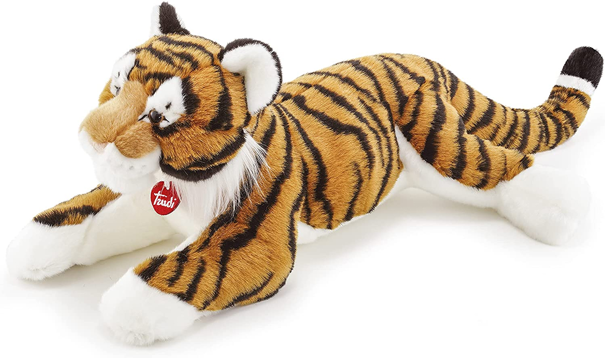 Грациозная поза, кошачий дикий взгляд, яркий окрас с выразительными черными полосами выдают в тигре Брюсе вожака и защитника. Может стать одной из любимых игрушек вашего ребенка.