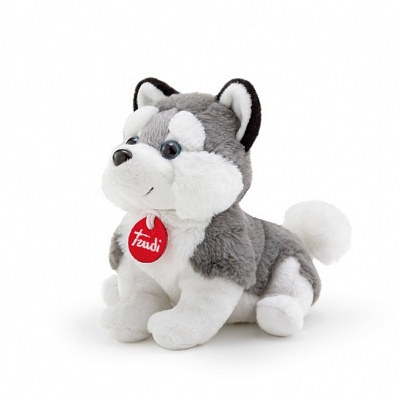 Щенок Хаски с плюшевой серо-белой шерсткой в ожидании маленького хозяина добродушно смотрит по сторонам, озаряя окружающих голубоглазым взором. Европейское итальнское качество, качественные материалы, а также возможность ручной стирки.
