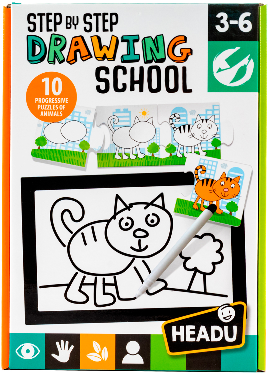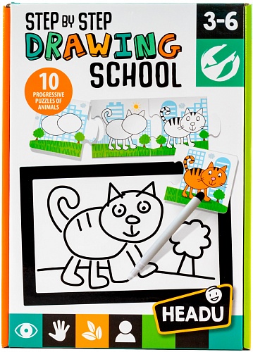 Оригинальный комплект для пошагового обучения детей рисованию. В игру входит специальный маленький планшет с фломастером для рисования и стирания, для развития творческих навыков. В комплекте: 10 поэтапных пазлов с животными; стираемый фломастер; планшет; трафарет.