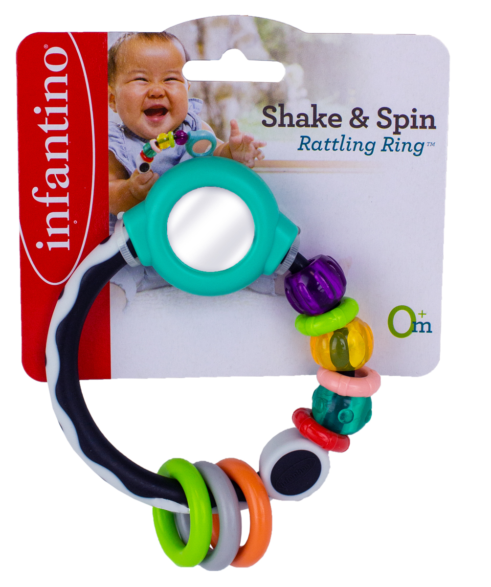 Красочное кольцо, которое очень удобно держать в маленькой ручке. На нем расположены разноцветные бусины с разными фактурами, колечки и небольшое зеркальце. Развивает тактильные ощущения и мелкую моторику.