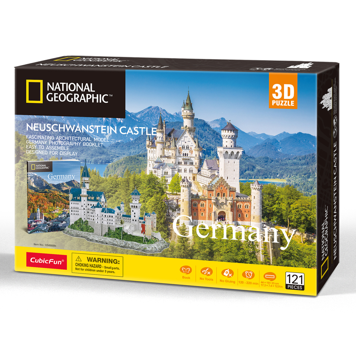 3D пазлы от лидирующей инновационной компании CubicFun - высокий уровень детализации, качество самих деталей (детали надежно крепятся между собой без дополнительной фиксации, создавая единую конструкцию), стильный дизайн, а также информационная и образовательная составляющая. Увлекательный 3D пазл немецкого замка Нойшванштайн из серии National Geographic c уровнем сложности 5 из 6. Набор содержит 121 детали, а размер готового сооружения составляет 44 х 19 х 33 см. Линейка National Geographic позволяет построить реалистичные достопримечательности в формате 3d пазла (с детальной инструкцией по сборке), а также фото-буклет страны из 28 страниц вдохновит на путешествия. Серия 3D пазлов National Geographic обладает красивым декором, воссоздает всемирно известные достопримечательности и шедевры архитектуры, повышает уровень концентрации, зрительно-моторной координации, вдохновляет на познание мира. 3D пазлы от CubicFun - это универсальный товар, удовлетворяющий потребности широкого круга потребителей: новый формат времяпровождения для детей, подростков и взрослых с интересным игровым процессом. Развиваются творческие навыки и концентрация к деталям. Различные уровни сложности помогут определиться с моделью как новикам, так и опытным моделистам. 3D пазлы CubicFun станут отличным подарком близкому человеку или себе для сборки дома или в дороге.