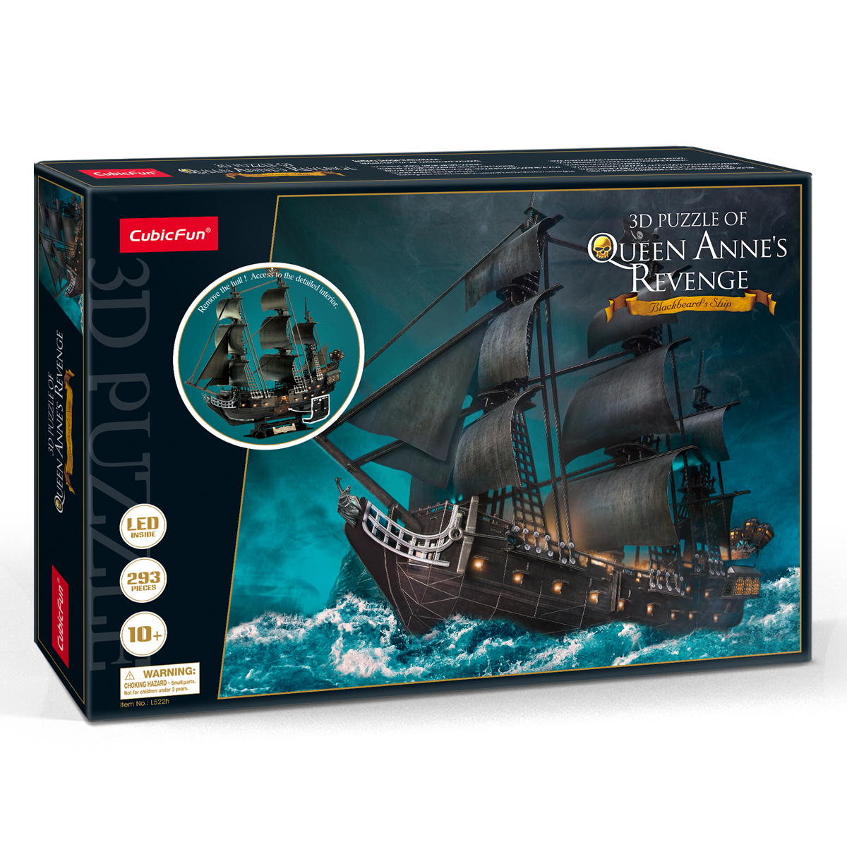 3D пазлы от лидирующей инновационной компании CubicFun - высокий уровень детализации, качество самих деталей (детали надежно крепятся между собой без дополнительной фиксации, создавая единую конструкцию), стильный дизайн, а также информационная и образовательная составляющая. 3D пазл корабль «Месть королевы Анны» из LED серии с подсветкой c уровнем сложности 6 из 6. Набор содержит 293 объёмных деталей, а размер готового макета составляет 68 х 26 х 64 см. LED серия - это большие 3D наборы со значимыми достопримечательностями, а также знаменитыми кораблями, дополнительно усовершенствованные светодиодной подсветкой. В комплекте 3D пазл с детальной инструкцией по сборке, а также LED подсветка. 3D пазлы от CubicFun - это универсальный товар, удовлетворяющий потребности широкого круга потребителей: новый формат игры для детей, подростков и взрослых через знакомство с известными городами и достопримечательностями, развитие творческих навыков и внимания. Представлены с различными уровнями сложности, подходящими как любителям, так и профессиональным моделистам. 3D пазлы CubicFun станут отличным подарком близкому человеку.