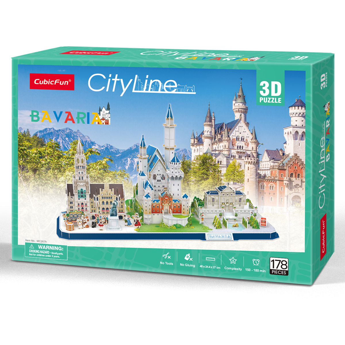 3D пазлы от лидирующей инновационной компании CubicFun - высокий уровень детализации, качество самих деталей (детали надежно крепятся между собой без дополнительной фиксации, создавая единую конструкцию), стильный дизайн, а также информационная и образовательная составляющая. Увлекательный 3D пазл панорамы Баварии из серии CityLine c уровнем сложности 4 из 4. Набор содержит 178 объёмных деталей, а размер готового макета составляет 48 х 22,4 х 26,9 см. Линейка CityLine – это панорамы самых невероятных городов мира в 3D формате, которые объединяют культовые сооружения с городским пейзажем. В комплекте помимо самого пазла (с детальной инструкцией по сборке) вложен буклет с достопримечательностями страны. 3D пазлы от CubicFun - это универсальный товар, удовлетворяющий потребности широкого круга потребителей: новый формат игры для детей, подростков и взрослых через знакомство с известными городами и достопримечательностями, развитие творческих навыков и внимания. Представлены с различными уровнями сложности, подходящими как любителям, так и профессиональным моделистам. 3D пазлы CubicFun станут отличным подарком близкому человеку.